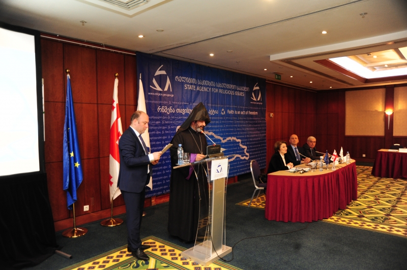 Zaza Vashakmadze, Chairman of the State Agency for Religious Issues presented the report to guests. The Chairman of the Agency emphasized the challenges of freedom of religion in the country, particularly in the occupied territories, where permanent violation of the indigenous population - the rights of Georgians in terms of freedom of religion, expression and freedom of movement. Also, arbitrary "restoration" of monuments of Georgian theological culture is underway to remove Georgian traces.