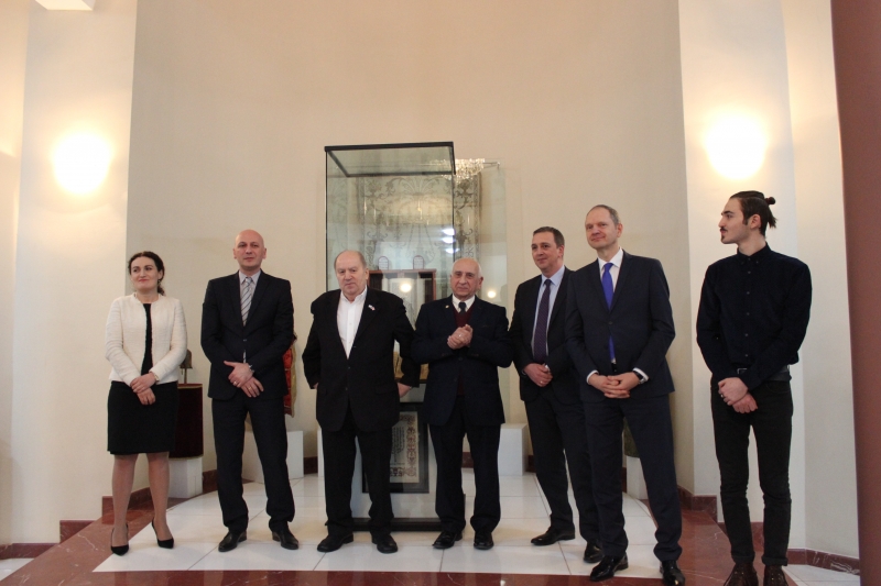 The exhibition was attended by the Ambassador Extraordinary and Plenipotentiary of the Embassy of Israel to Tbilisi, Georgia Shabtai Tsur, other representatives of the diplomatic corps, the Minister of Culture and Monument Protection of Georgia, Mikheil Giorgadze, State Minister of Georgia for Reconciliation and Civic Equality Ketevan Tsikhelashvili and the Chairman of the State Agency for Religious Issues Zaza Vashakmadze. Giedrius Puodziunas informed the audience about the situation of Jews in Lithuania at that time. The Chairman of the State Agency for Religious Issues Zaza Vashakmadze noted, that he is proud to represent the country where in the period of our long-term relationship with Jews, including the Soviet Regime, there have been no discriminatory actions against them.