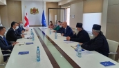 Today, at the Administration of the Government of Georgia, Zaza Vashakmadze, Chairman of the State Agency for Religious Issues, and Giorgi Ukleba, Deputy Chairman of the Agency met with the Ambassador Extraordinary and Plenipotentiary of Azerbaijan to Georgia, Faig Guliyev, the First Secretary of the Embassy Anar Rasulov and the third Secretary Ramel Latifov. The meeting was also attended by the Bishop of Khornabuji and Hereti Dimitri (Kapanadze) and the head of St. George’s Church in Kakhi, Father Petre Khumarashvili.