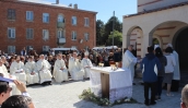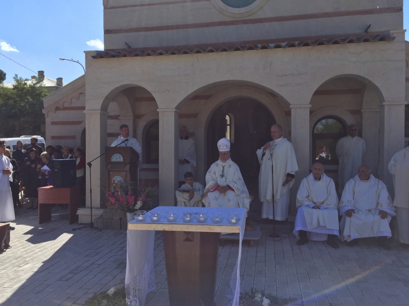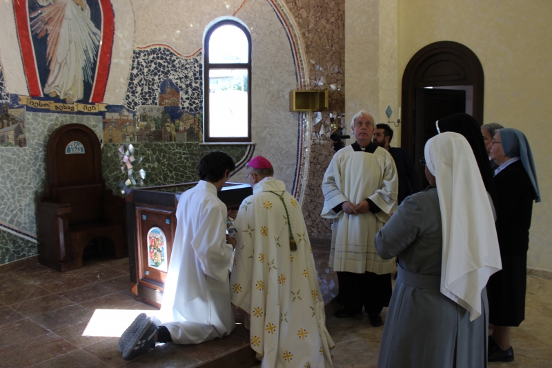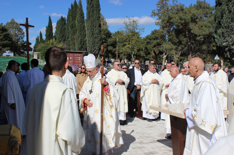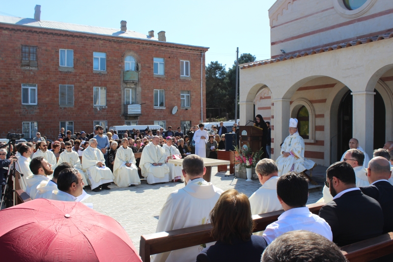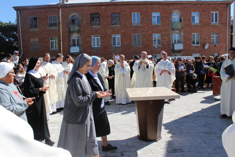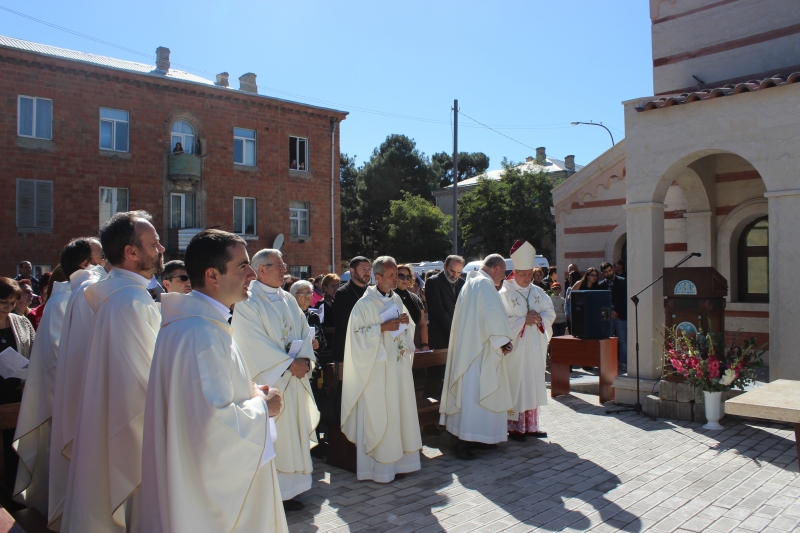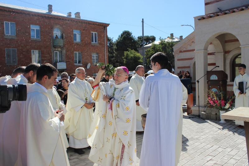 ტაძრის კურთხევის საზეიმო მსახურება ამიერკავკასიის ლათინ-კათოლიკეთა სამოციქულო ადმინისტრაციის ხელმძღვანელმა ეპისკოპოსმა ჯუზეპე პაზოტომ და კათოლიკე მღვდელმსახურებმა შეასრულეს.