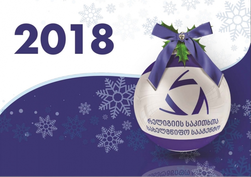 რელიგიის საკითხთა სახელმწიფო სააგენტო გილოცავთ ახალ,  2018 წელს, ფეხბედნიერი ყოფილიყოს იგი საქართველოსთვის. მშვიდობა, კეთილდღეობა, წარმატებები გვსურს გისურვოთ თითოეულ თქვენგანს, ჩვენი ქვეყნის ყველა მოქალაქეს, ყველა რელიგიური თემის წარმომადგენელს, ვისაც საკუთარი წვლილი შეგაქვთ  ქვეყნის მშენებლობაში. 2018 ყოფილიყოს გაერთიანების, გამთლიანების წელი ჩვენი სამსობლოსათვის. ახალ წელს გილოცავთ, მეგობრებო!