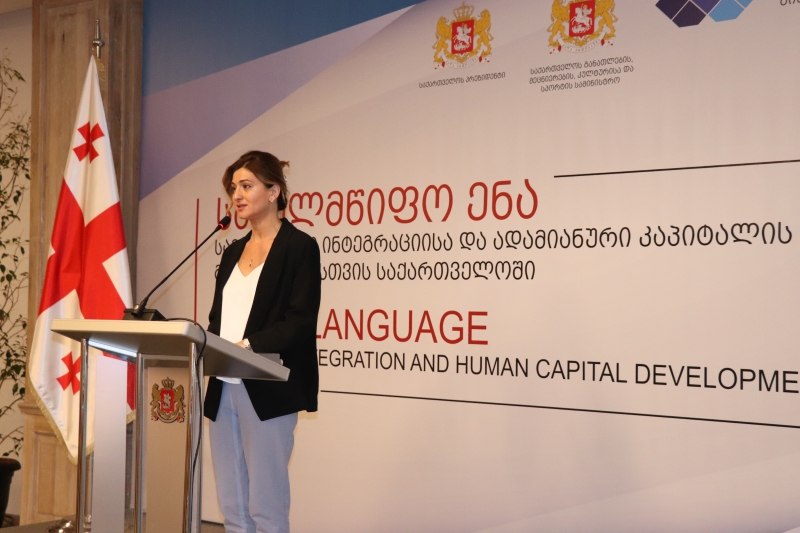 დღეს სასტუმრო „თბილისი რუმს“ -ში გაიმართა კონფერენცია „სახელმწიფო ენა სამოქალაქო ინტეგრაციისა და ადამიანური კაპიტალის განვითარებისთვის საქართველოში“. კონფერენციაზე მისასალმებელი სიტვით შეკრებილ საზოგადოებას მიესალმნენ: საქართველოს პრეზიდენტი, სალომე ზურაბიშვილი, შერიგებისა და სამოქალაქო თანასწორობის საკითხებში საქართველოს სახელმწიფო მინისტრი, ქეთევან ციხელაშვილი, რელიგიის საკითხთა სახელმწიფო სააგენტოს თავმჯდომარე, ზაზა ვაშაყმაძე, საქართველოს პარლამენტის განათლების, მეცნიერებისა და კულტურის კომიტეტის თავმჯდომარე, მარიამ ჯაში და განათლების, მეცნიერების, კულტურისა და სპორტის მინისტრის მოადგილე, ირინე აბულაძე.