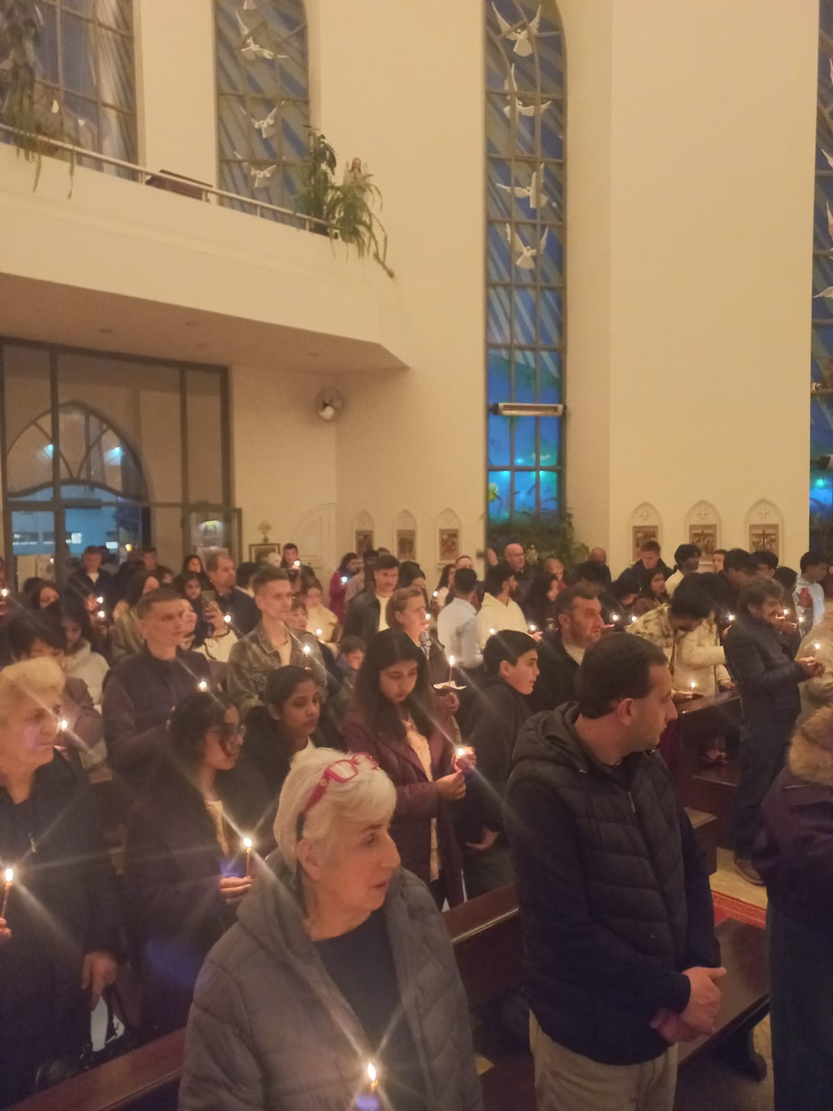 ბათუმში მცხოვრები კათოლიკეები სულიწმინდის კათოლიკურ ეკლესიაში შეიკრიბნენ, სადაც სააღდგომო ლიტურგიას პადრე გაბრიელე ბრაგანტინი უძღვებოდა.