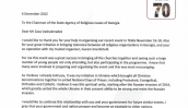 საქართველოს რელიგიის საკითხთა სახელმწიფო სააგენტოს თავმჯდომარეს
