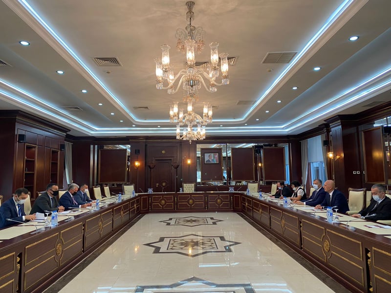 During the visit to Azerbaijan, the delegation of the Agency held a meeting in the Parliament of the Republic of Azerbaijan. Zaza Vashakmadze, Chairman of the State Agency for Religious Issues, Giorgi Ukleba, Deputy Chairman, and Gvantsa Tskhovrebadze, Protocol Manager, met with Fazail Ibrahimli, Deputy Chairman of the Parliament, and Head of the Parliamentary Committee on Religious Associations.