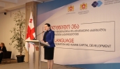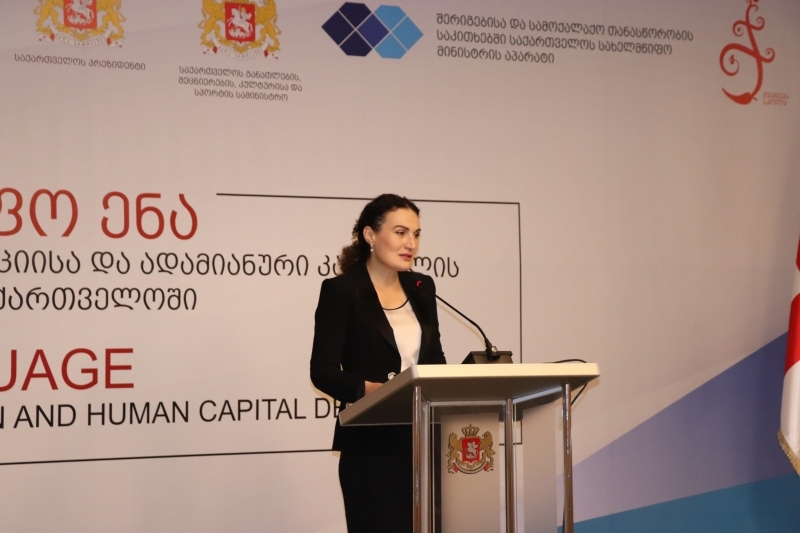 The conference "State Language for Civic Integration and Human Capital Development in Georgia" was held at Tbilisi Rooms Hotel. At the conference welcome speech were given by: the President of Georgia Salome Zurabishvili, State Minister for Reconciliation and Civic Equality of Georgia Ketevan Tsikhelashvili, chairman of the State Agency for Religious Issues Zaza Vashakmadze, chairperson of the Education, Science and Culture Committee Mariam Jashi and Deputy Minister of Education, Science, Culture and Sport of Georgia Irine Abuladze.