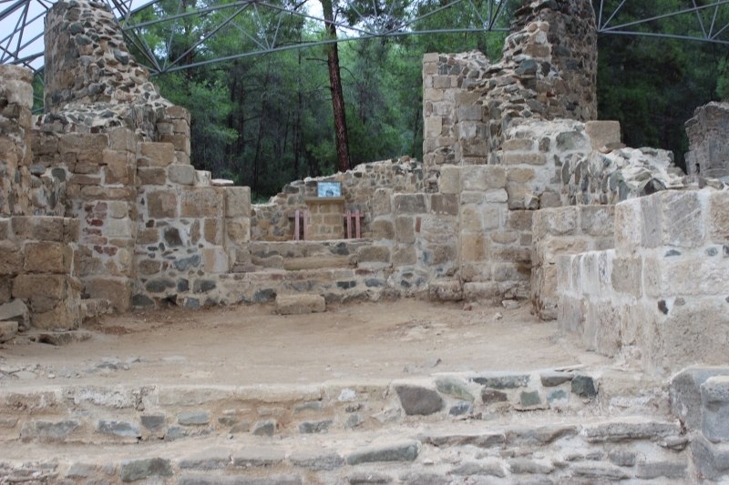 The Ghalia Monastery is located in the forest near the small town of Paphos district, Polis Chrysochous, northwest Cyprus. The ruins of the monastery were discovered in 1981 by Vakhtang Jobadze, the Georgian scientist, art historian and the professor of the University of California. This ancient hub of Georgian spirituality and culture was mentioned several times in ancient Georgian writing sources, including the earliest XI-XII centuries. The Georgian monks served in the Ghalia Monastery to the end of its existence. Presumably, the monastery ceased to exist at the end of the XVI century after the Ottoman occupation of Cyprus. The Ghalia Monastery was robbed and turned into ruins. The locals preserved the legend that in 1571 after the conquest of Cyprus, the Ottoman army seized Ghalia where the six Georgian monks were killed by torture, but the seventh monk flew away, he jumped from the rock safely. The frightened followers returned back but the Georgian monk built a hut and lived there until old age. The place of this miracle is called till today the “Leap of the Monk”. There is a legend about the monastery mill preserved in the believers that it worked only for the monastery and was stopped by itself as soon as other grains were found in it.