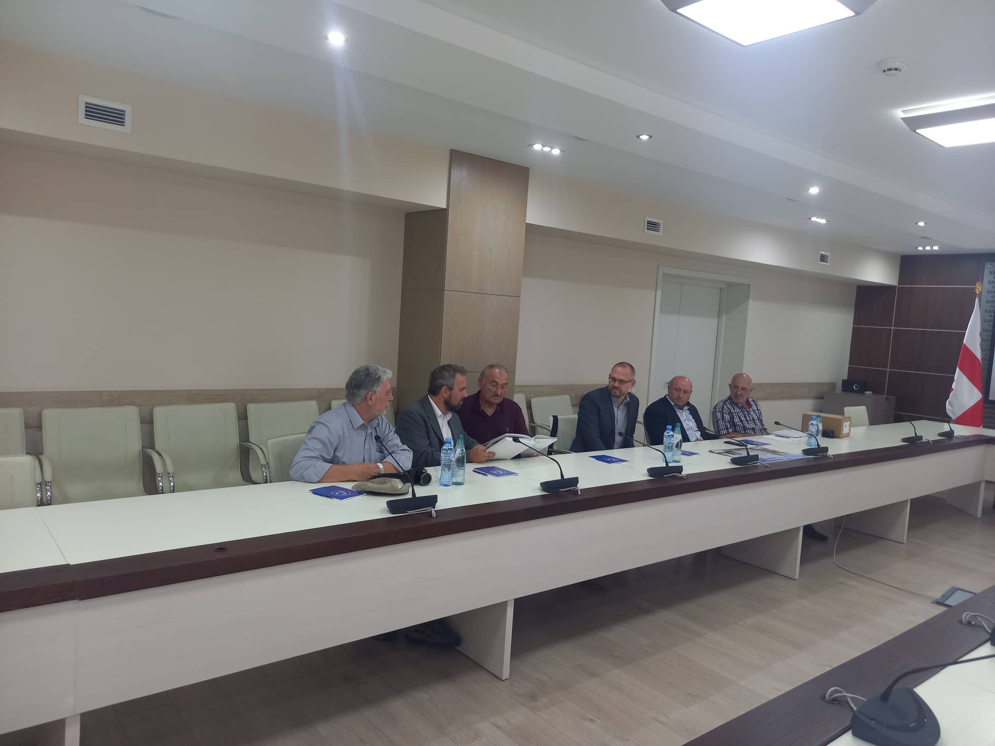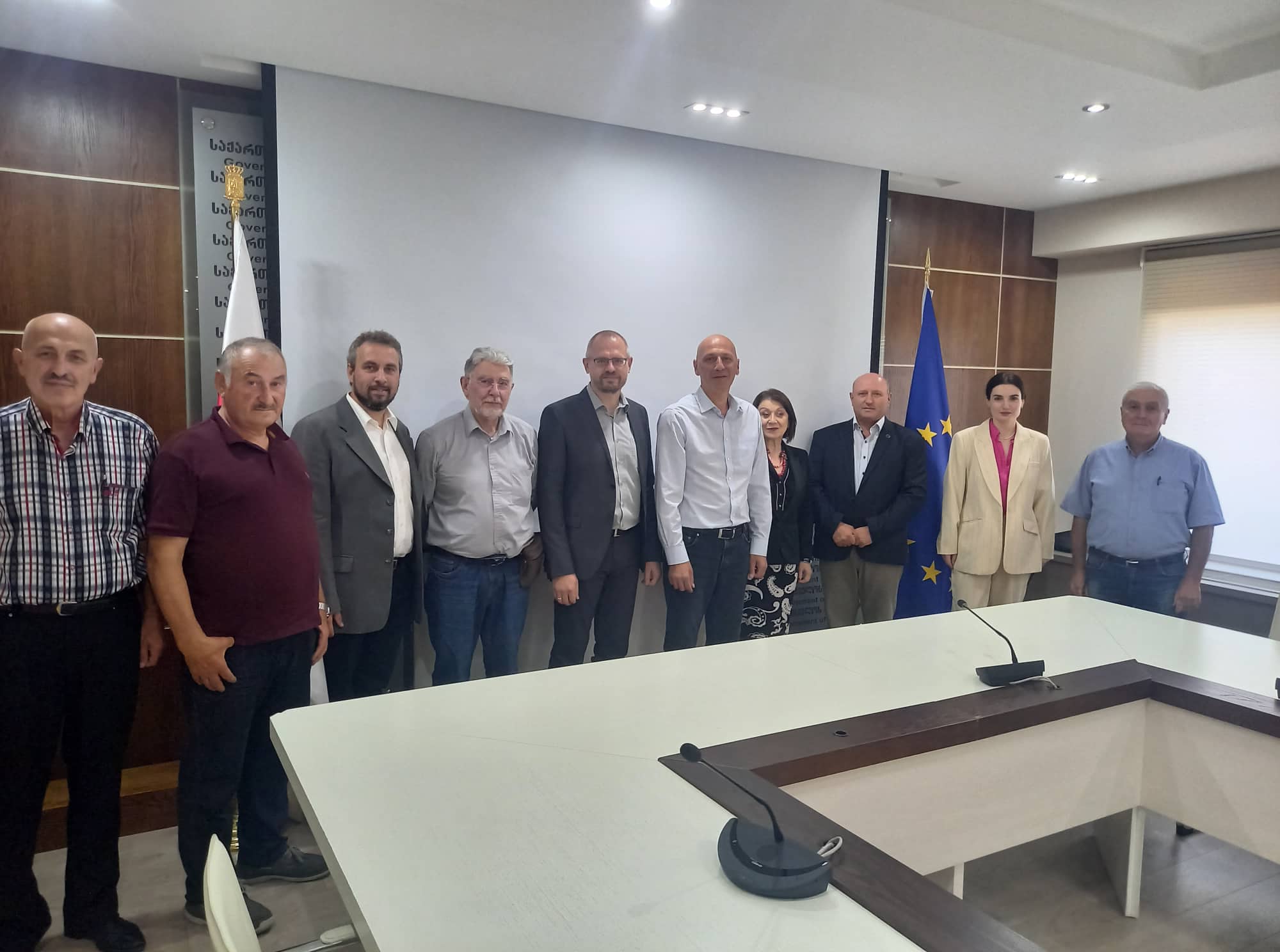 Today, at the Administration of the Government of Georgia, the chairman of the State Agency for Religious Issues, Zaza Vashakmadze, met with the members of the Union of Christian Baptist Churches of Georgia and the new leadership of the German international charity organization "FriedensBote". The Agency was visited by: the head of the "FriedensBote" organization, Alexander Willer, the financial director, Alexander Jantsen and the member of the board of the organization, Pierre Vaubaillon, the chairman of the Union of Christian Baptist Churches of Georgia, Bishop Gia Kandelaki, the head of the "FriedensBote" mission in Georgia, the elder Levan Akhalmosulishvili and Tariel Papinashvili, the Executive Secretary of the Union of Christian Baptist Churches.
