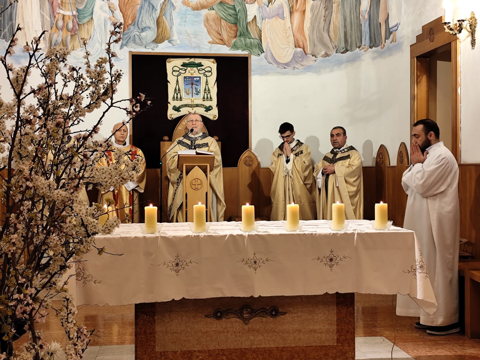 სააღდგომო ლიტურგია, ტრადიციულად, თბილისის მარიამ ღვთისმშობლის ზეცად აყვანების კათოლიკურ კათედრალურ ტაძარში შედგა. სადღესასწაულო მსახურებას უძღვებოდა ეპისკოპოსი ჯუზეპე პაზოტო.