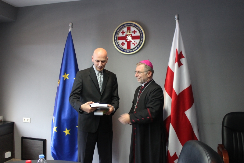 შეხვედრას ესწრებოდნენ სააგენტოს ხელმძღვანელი პირები: ზაზა ვაშაყმაძე, ლელა ჯეჯელავა, ვლადიმერ ნარსია, არჩილ მეტრეველი. სტუმარმა მოისმინა ინფორმაცია ახლად შექმნილი სააგენტოს საქმიანობაზე, მის მიზნებსა და გეგმებზე. განიხილეს კათოლიკური ეკლესიის რამდენიმე მნიშვნელოვანი საკითხი, კერძოდ, ეკლესიების მშენებლობისა და კონფესიების დაფინანსების შესახებ.