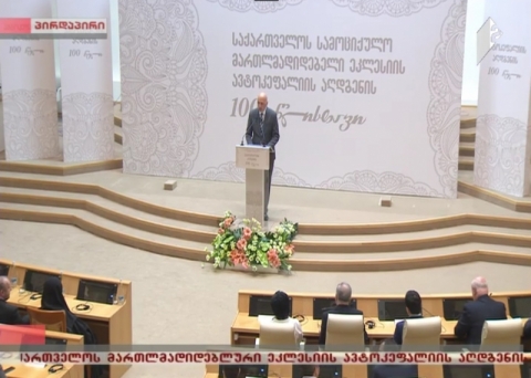 საქართველოს პარლამენტის პლენარულ დარბაზში საქართველოს მართლმადიდებელი ეკლესიის ავტოკეფალიის აღდგენის 100 წლისთავთან დაკავშირებით გაიმართა საზეიმო სხდომა და მიღება, რომელსაც ესწრებოდნენ: საქართველოს კათოლიკოს-პატრიარქი, უწმინდესი და უნეტარესი ილია II, საქართველოს პრემიერ- მინისტრი გიორგი კვირიკაშვილი, საქართველოს პრეზიდენტი გიორგი მარგველაშვილი, საქართველოს პარლამენტის თავმჯდომარე ირაკლი კობახიძე,