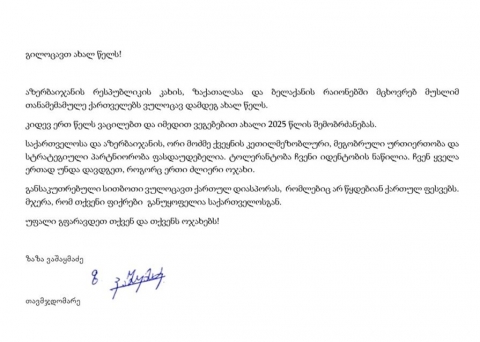 ზაზა ვაშაყმაძე აზერბაიჯანში მცხოვრებ თანამემამულეებს ახალ წელს ულოცავს