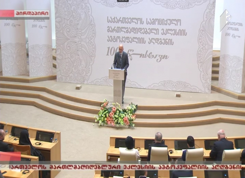 საქართველოს პარლამენტის პლენარულ დარბაზში საქართველოს მართლმადიდებელი ეკლესიის ავტოკეფალიის აღდგენის 100 წლისთავთან დაკავშირებით გაიმართა საზეიმო სხდომა და მიღება, რომელსაც ესწრებოდნენ: საქართველოს კათოლიკოს-პატრიარქი, უწმინდესი და უნეტარესი ილია II, საქართველოს პრემიერ- მინისტრი გიორგი კვირიკაშვილი, საქართველოს პრეზიდენტი გიორგი მარგველაშვილი, საქართველოს პარლამენტის თავმჯდომარე ირაკლი კობახიძე, საქართველოს პარლამენტისა და მთავრობის წევრები, დიპლომატიური კორპუსის წარმომადგენლები, წმინდა სინოდის წევრები, სხვადასხვა რელიგიური ორგანიზაციის წარმომადგენლები.