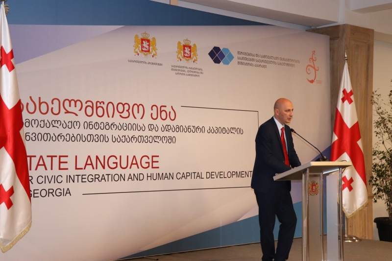 დღეს სასტუმრო „თბილისი რუმს“ -ში გაიმართა კონფერენცია „სახელმწიფო ენა სამოქალაქო ინტეგრაციისა და ადამიანური კაპიტალის განვითარებისთვის საქართველოში“. კონფერენციაზე მისასალმებელი სიტვით შეკრებილ საზოგადოებას მიესალმნენ: საქართველოს პრეზიდენტი, სალომე ზურაბიშვილი, შერიგებისა და სამოქალაქო თანასწორობის საკითხებში საქართველოს სახელმწიფო მინისტრი, ქეთევან ციხელაშვილი, რელიგიის საკითხთა სახელმწიფო სააგენტოს თავმჯდომარე, ზაზა ვაშაყმაძე, საქართველოს პარლამენტის განათლების, მეცნიერებისა და კულტურის კომიტეტის თავმჯდომარე, მარიამ ჯაში და განათლების, მეცნიერების, კულტურისა და სპორტის მინისტრის მოადგილე, ირინე აბულაძე.