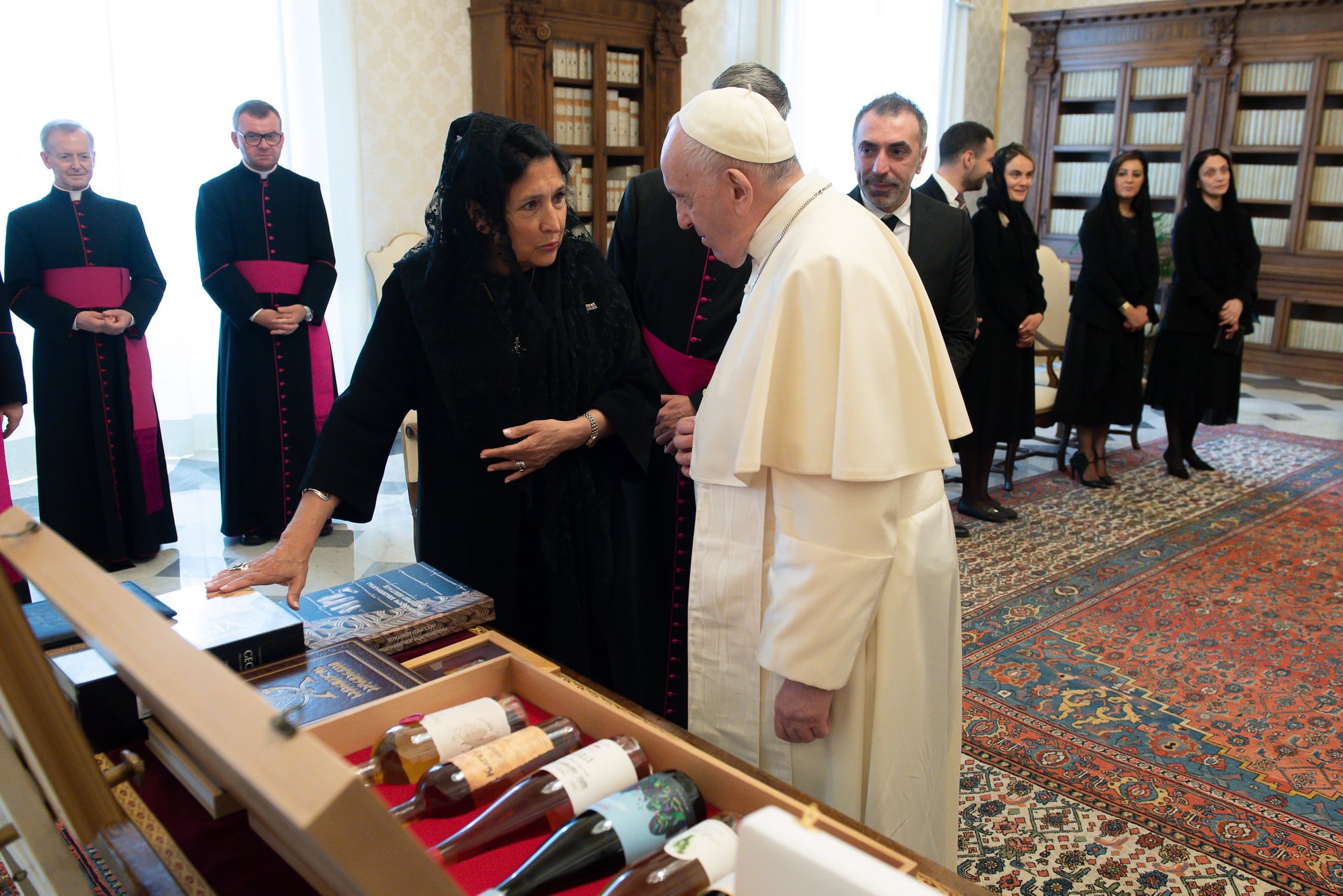 საქართველოს პრეზიდენტი, სალომე ზურაბიშვილი ვატიკანში, რომის პაპ ფრანცისკეს შეხვდა . პრეზიდენტმა პაპს საჩუქრად რელიგიის საკითხთა სახელმწიფო სააგენტოს მიერ ქართულ-ინგლისურ ენაზე გამოცემული წიგნი "ოკუპირებული მემკვიდრეობა " გადასცა, რომლის პრეზენტაცია დაგეგმილია ახლო მომავალში.